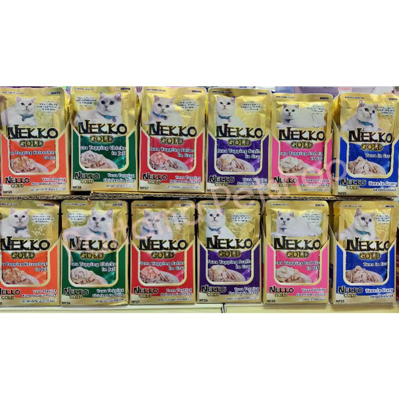 Nekko Gold อาหารเปียกแมวโต มีทั้ง เกรวี่ และเยลลี่.