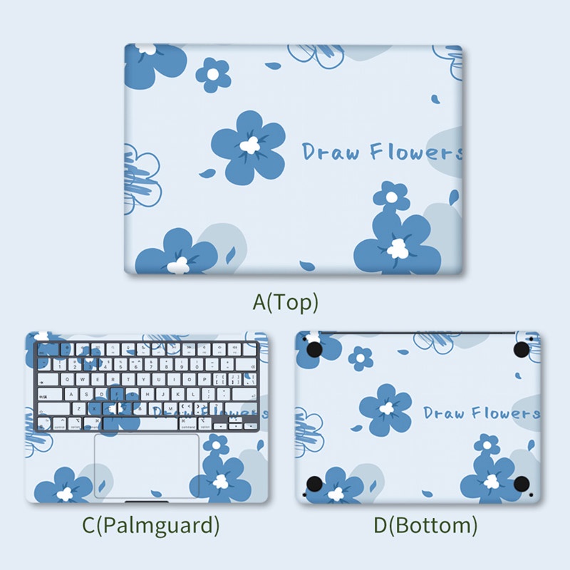 Sticker Suitable for 2023 Macbook Pro14 M1 A2442 Air 13.6 2022 M2 A2681 A2779 A2780 16inch Full body Protection art flowers Laptop Sticker for Macbook Pro Air 13 15 16 Inch A2179 A2251 A1706 A2485 keyboard Cover Skin