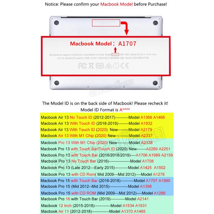 โปรดตรวจสอบหมายเลขรุ่นอย่างละเอียดที่ด้านล่างของ macbook ของคุณซึ่งหมายถึงภาพ: