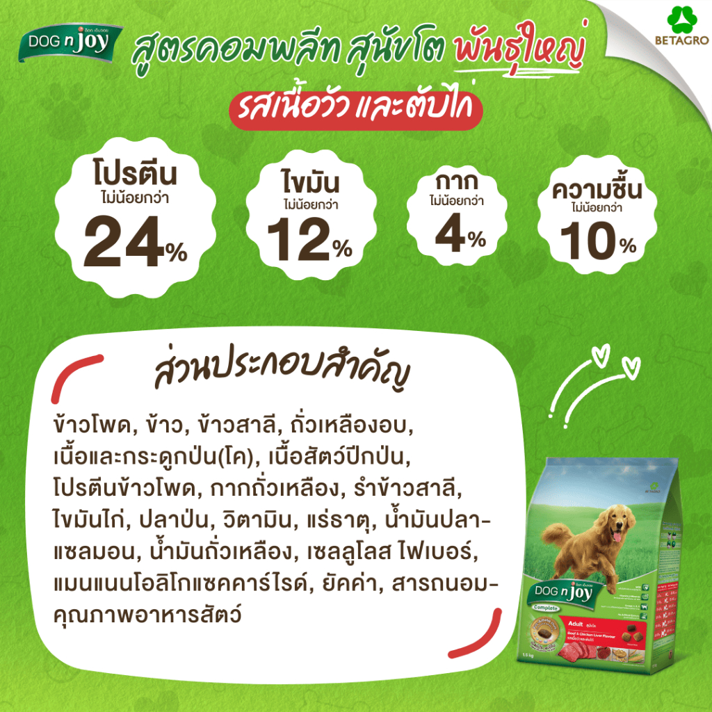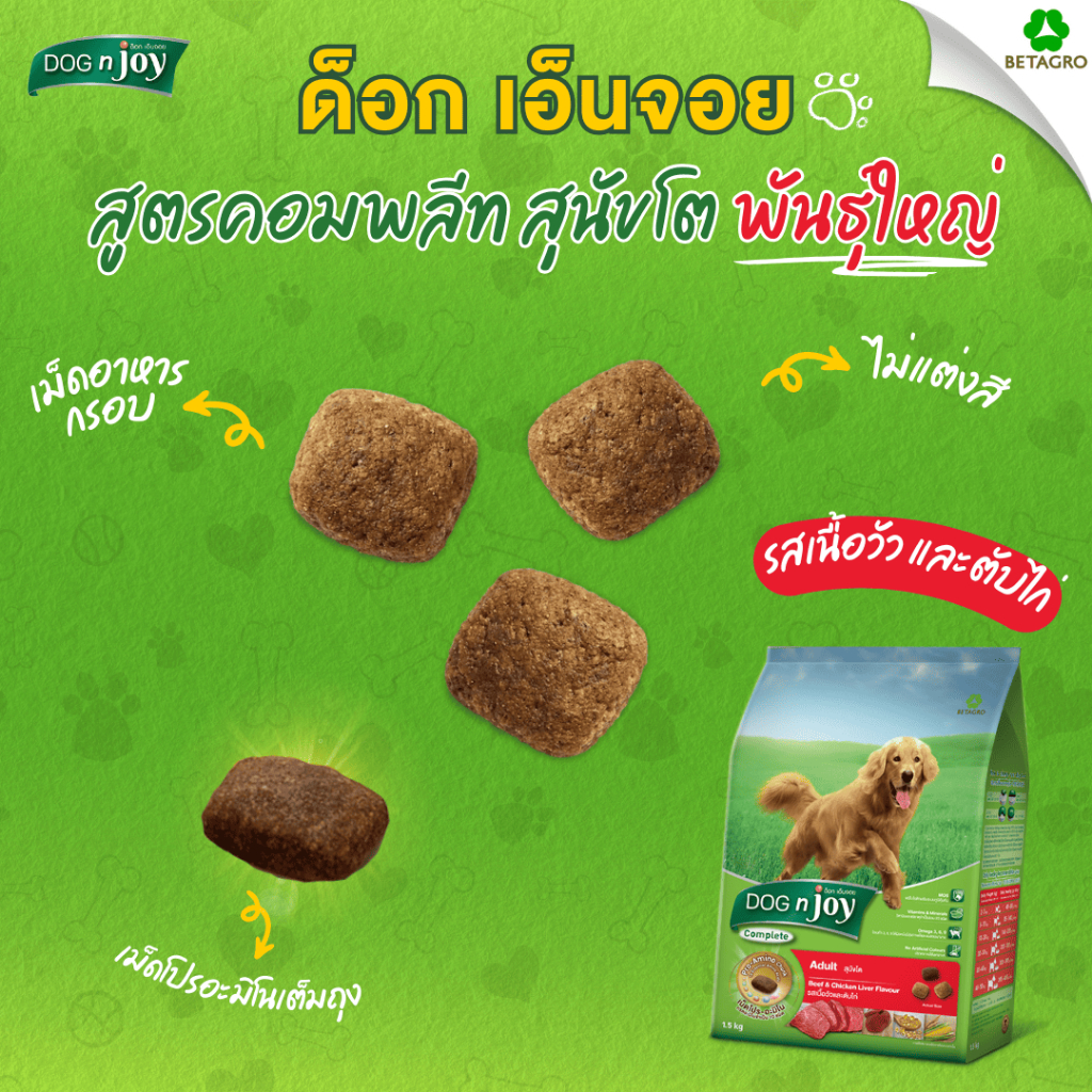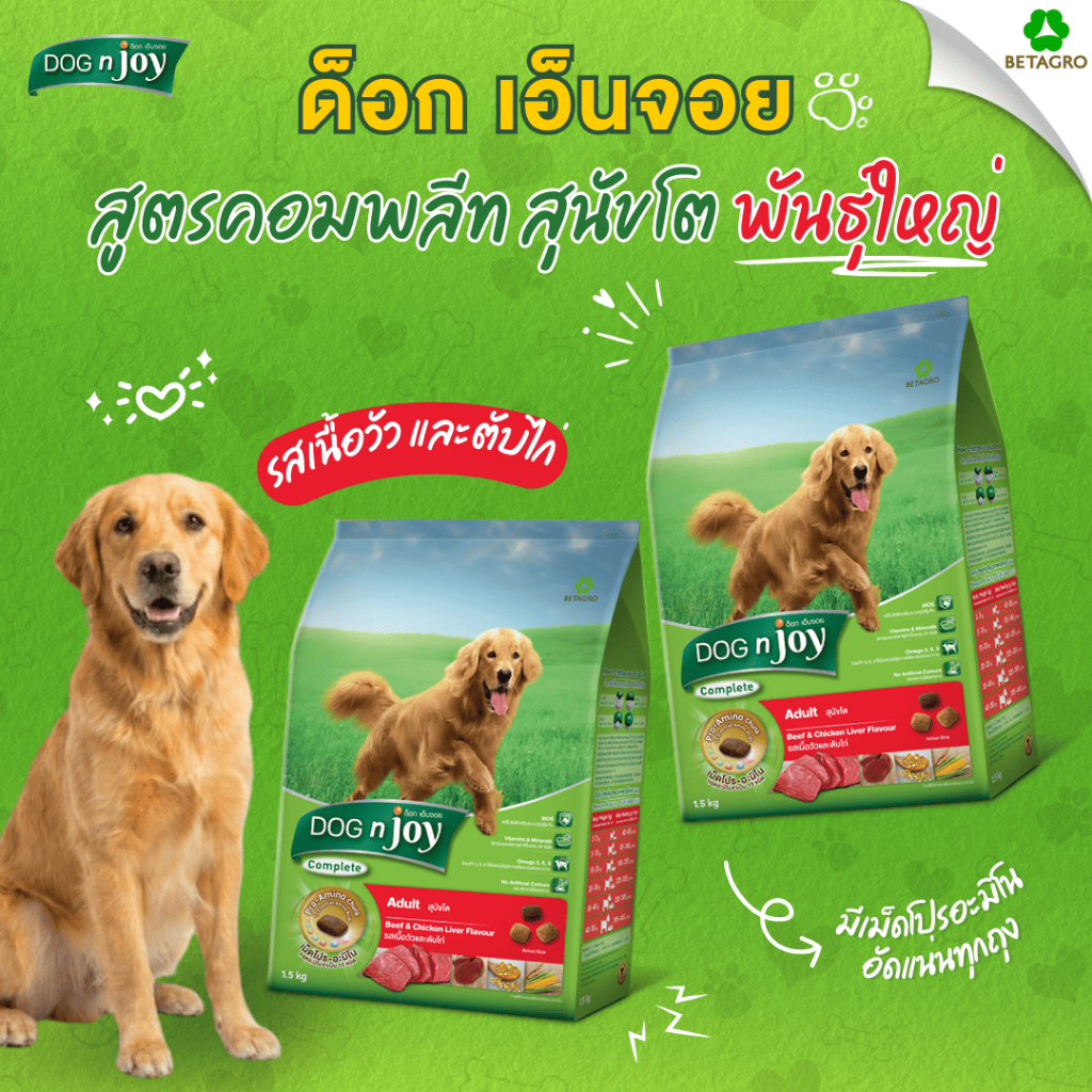 อาหารสุนัข Dog'njoy สูตรสุนัขโตสายพันธุ์ใหญ่ รสเนื้อและตับไก่ เสริมสร้างภูมิต้านทานให้สุนัขที่คุณรัก ผลิตด