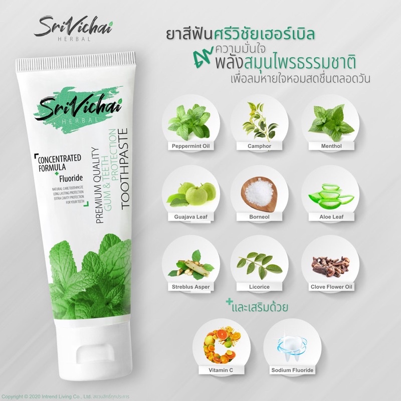 Srivichai Herbal Toothpaste - ยาสีฟันสมุนไพรศรีวิชัยเฮอร์เบิล [Concentrated - สูตรเข้มข้น] 80g