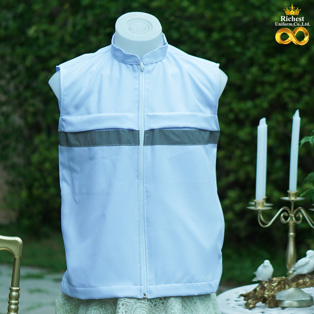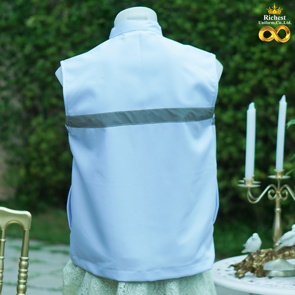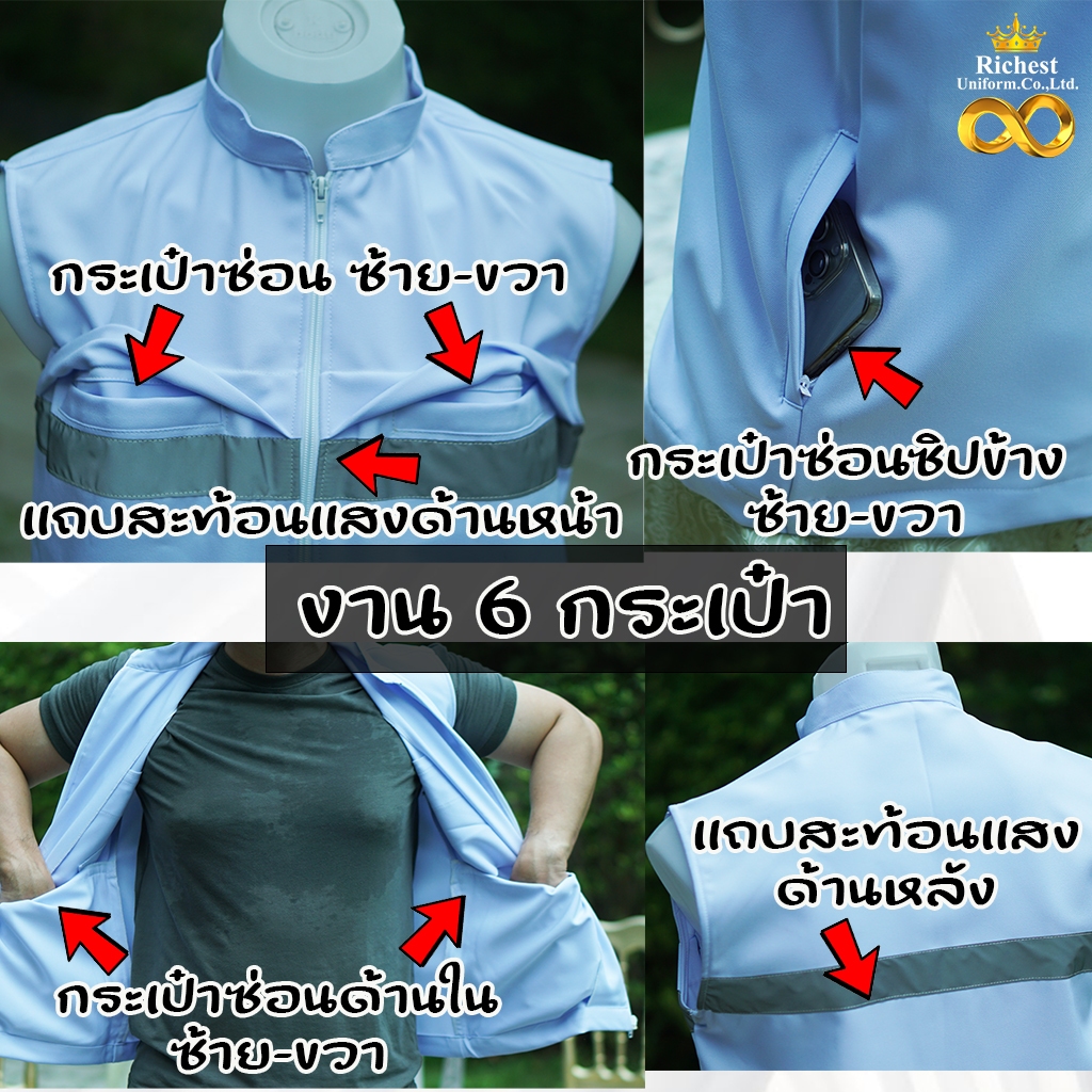 เสื้อกั๊กกระทรวงสาธารณสุข การแพทย์ ร้านเสริมสวย ร้านทำผม งาน 6 กระเป๋า สีขาว ???