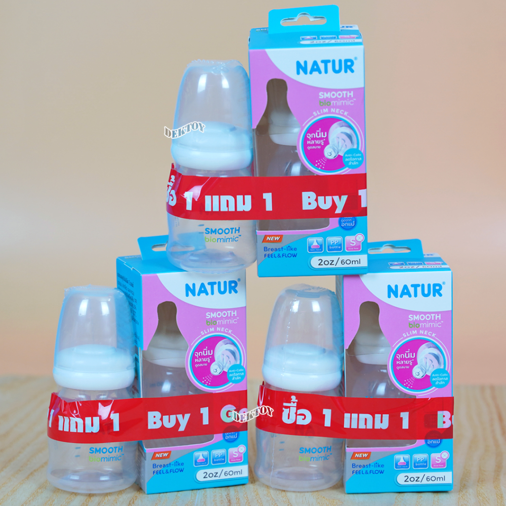 1 ฟรี1 NATUR เนเจอร์ ขวดนมเนเจอร์สมูทไบโอมิมิค 2/4/8 ออนซ์