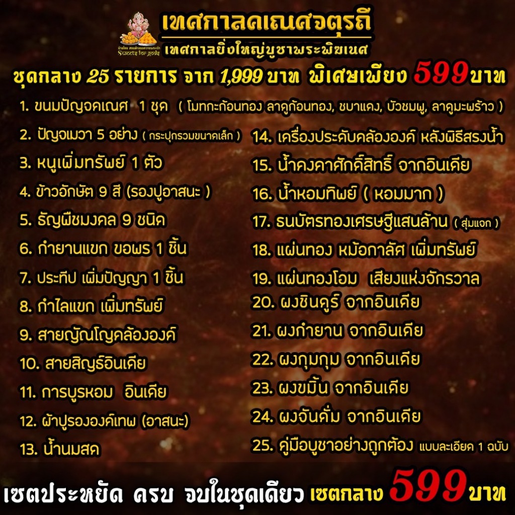 [ ขายดีมากๆ ] เซตไหว้ขอพรพระพิฆเนศ ( เซตกลาง 599 ) รับฟรี! พระคเนศ 1 องค์ สมหวัง สำเร็จ สมปรารถนา
