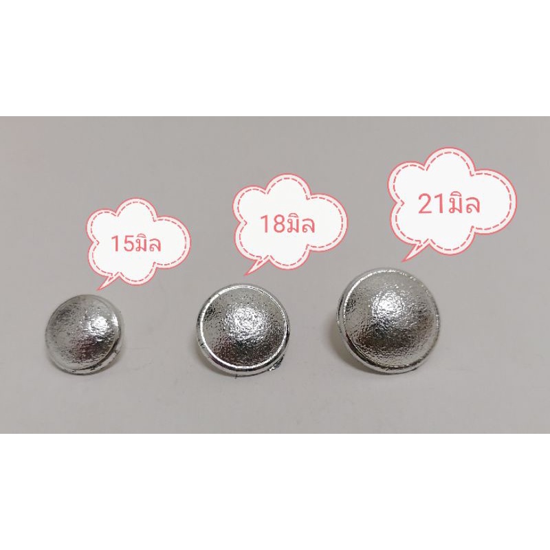 กระดุมสีเงิน “เนื้อทรายแต่งขอบ” มีให้เลือกหลายขนาด แผงละ6เม็ด