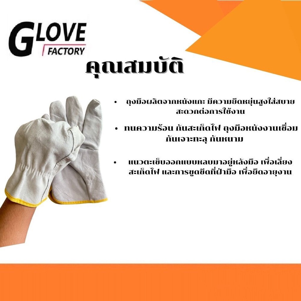 ผลิตจากหนังแกะ สีขาวเทาธรรมชาติ หนังแกะ นุ่มหนา ไม่ระคายเคืองผิวหนัง กันความร้อน กันลื่นได้ดีเยี่ยม เหมาะกับงานป้องกันความร้อน งานเชื่อมด้วยแก๊สอาร์กอน งานตรวจสอบชิ้นงาน ข้อมือมีแถบ elastic