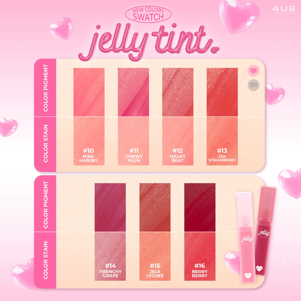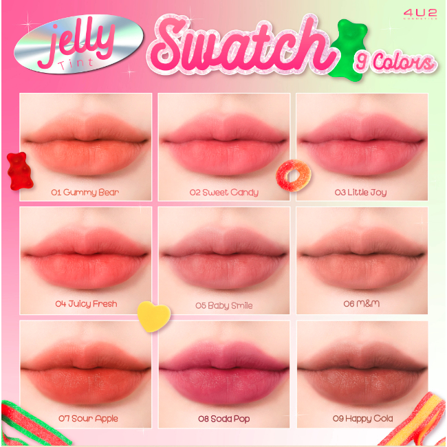4U2 JELLY TINT 4g ลิปทินท์เนื้อเยลลี่ เนื้อเนียนนุ่ม ให้ความละมุนนุ่ม เบาสบายปาก