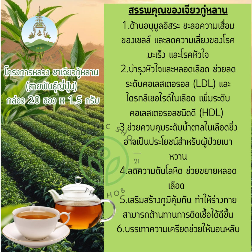 โครการหลวง ชา ชาเจียวกู่หลาน สายพันธุ์ญี่ปุ่น ทำจากยอดชาแท้ แบบกล่องบรรจุ 20 ซอง