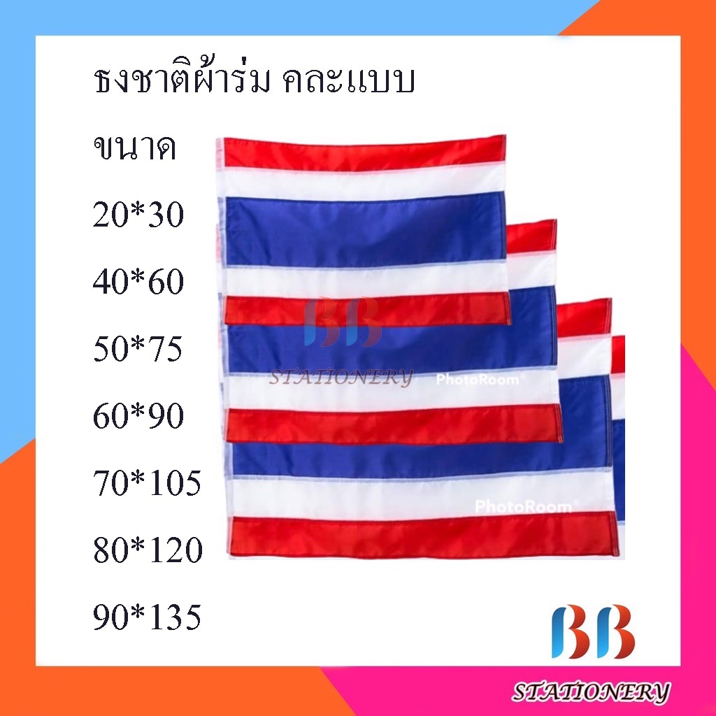 ธง ธงชาติ ธงชาติไทยผ้าร่ม ประดับบ้าน 40×60ซม. 50×75ซม. 60×90ซม. 70×105ซม. 80×120ซม. 90×135ซม.