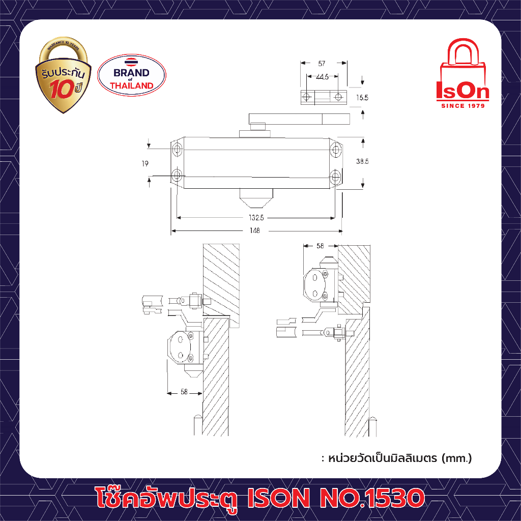 ISON โช๊คอัพประตูตั้งค้าง NO.1530 SILVER