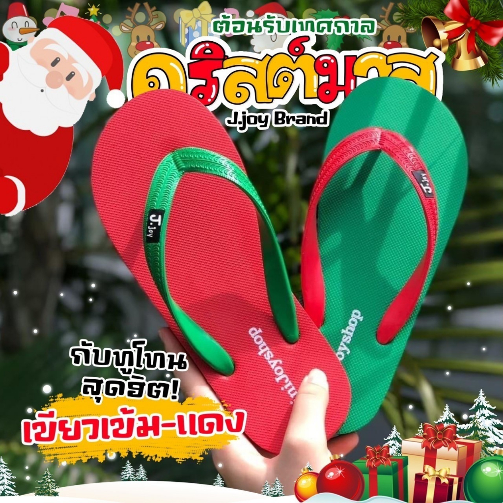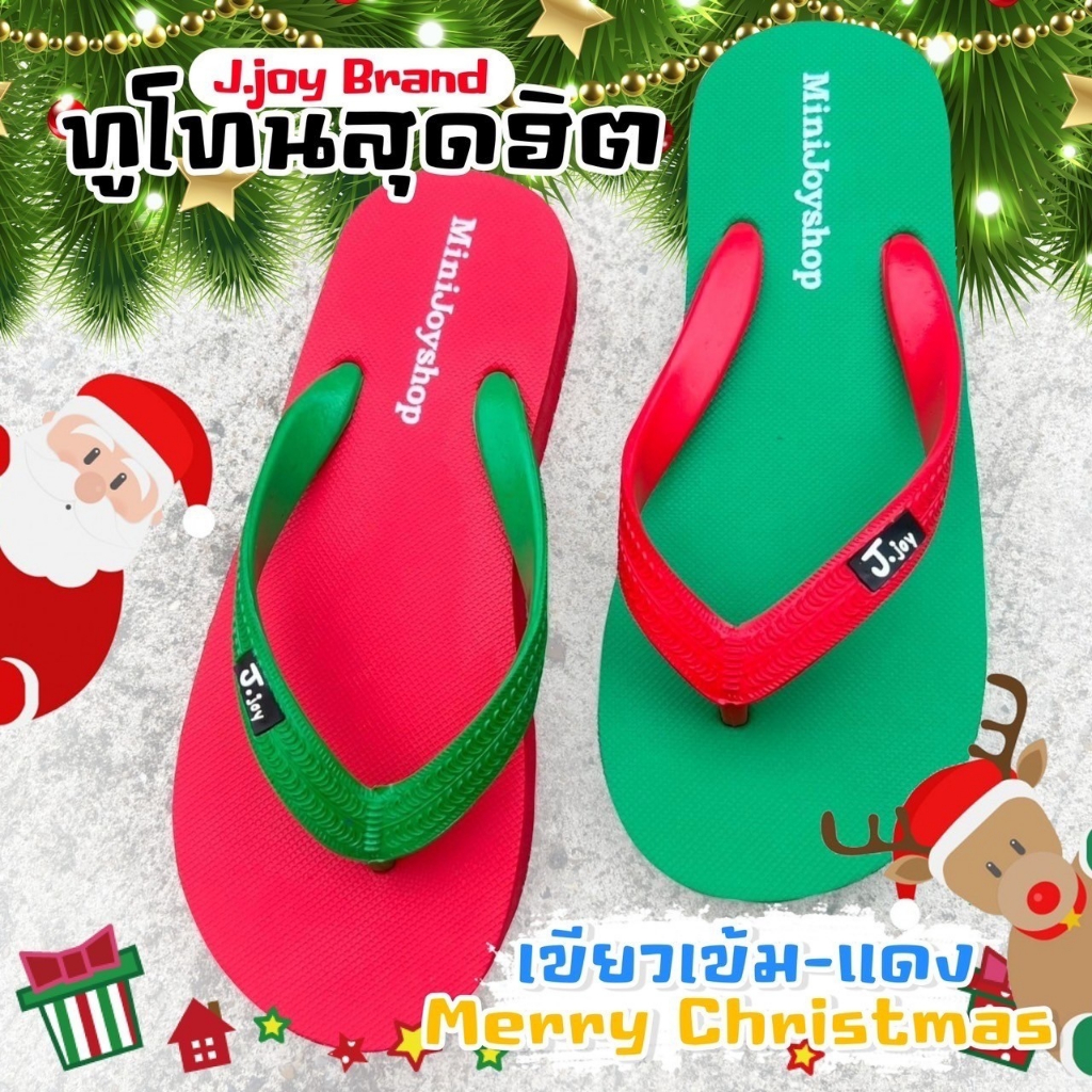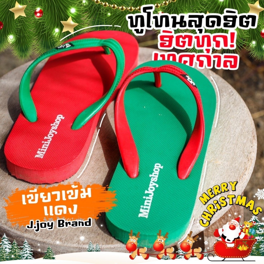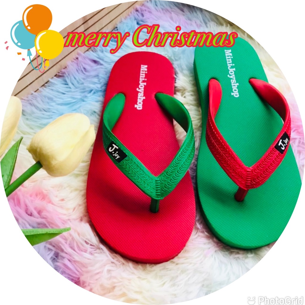 รองเท้าแตะ ทูโทนสีเขียวเข้ม-แดง(merry christmas)