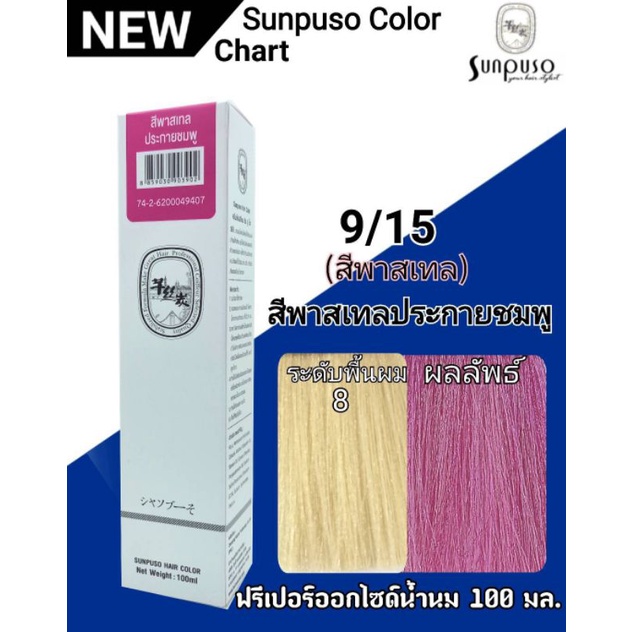 Sunpuso ซันปุโซะ ครีมเปลี่ยนสีผม สูตร AMINO ACID เบอร ์ 9/15 สีพาสเทลประกายชมพู ปริมาณ 100 มล./เปอร์ออกไซด์ 100 มล.