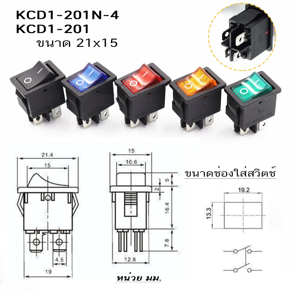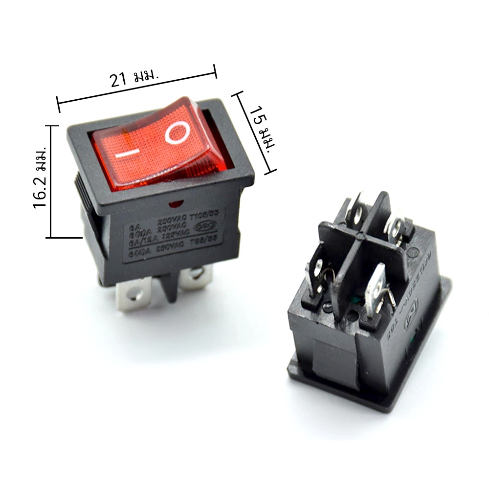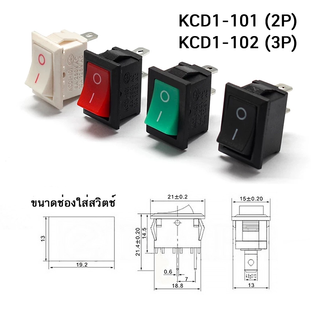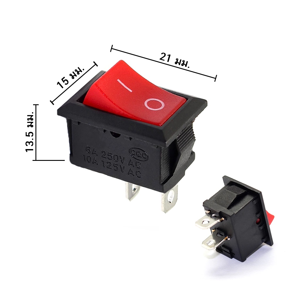 (1ตัว) สวิตช์กระดก ขนาด 21×15 mm rating 250V 6A KCD1-101 KCD1-102 KCD1-201N-4 2 ขา 3 ขา 4 ขา Button Switch AC Power