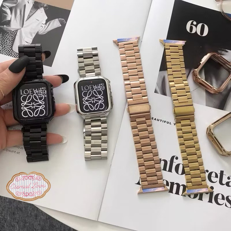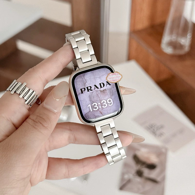 สายสแตนเลสสตีลอินเทรนด์โซ่โลหะสำหรับสาย smart watch11 10 8 7 se 6 5 4 3 watch band บุคลิกภาพ สายนาฬิกา