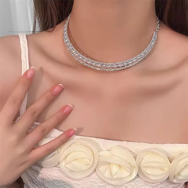 เครื่องประดับ สร้อยคอโชคเกอร์ แบบสั้น ประดับไข่มุกเทียม หรูหรา สีทอง สีเงิน เหมาะกับของขวัญ แฟชั่นเรียบง่าย