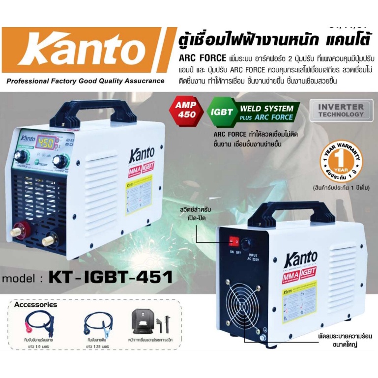 ค่าส่งถูก ตู้เชื่อม KANTO รุ่น KT-IGBT-410 KT-IGBT-401 KT-IGBT-451 KT-IGBT-475 ตู้เชื่อมอินเวอร์เตอร์ รับประกัน1ปี