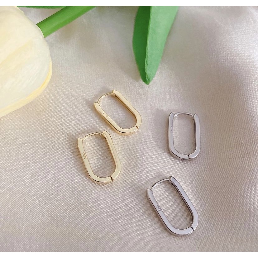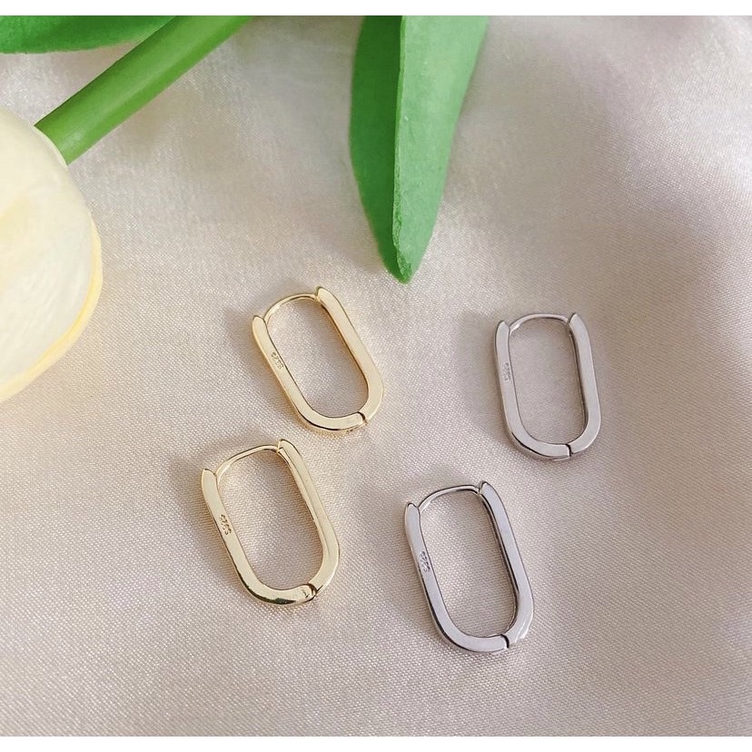 147_goodgift_station – s925 Silver square earrings ต่างหูเงินแท้ s925 ห่วงสี่เหลี่ยมแบบล็อค