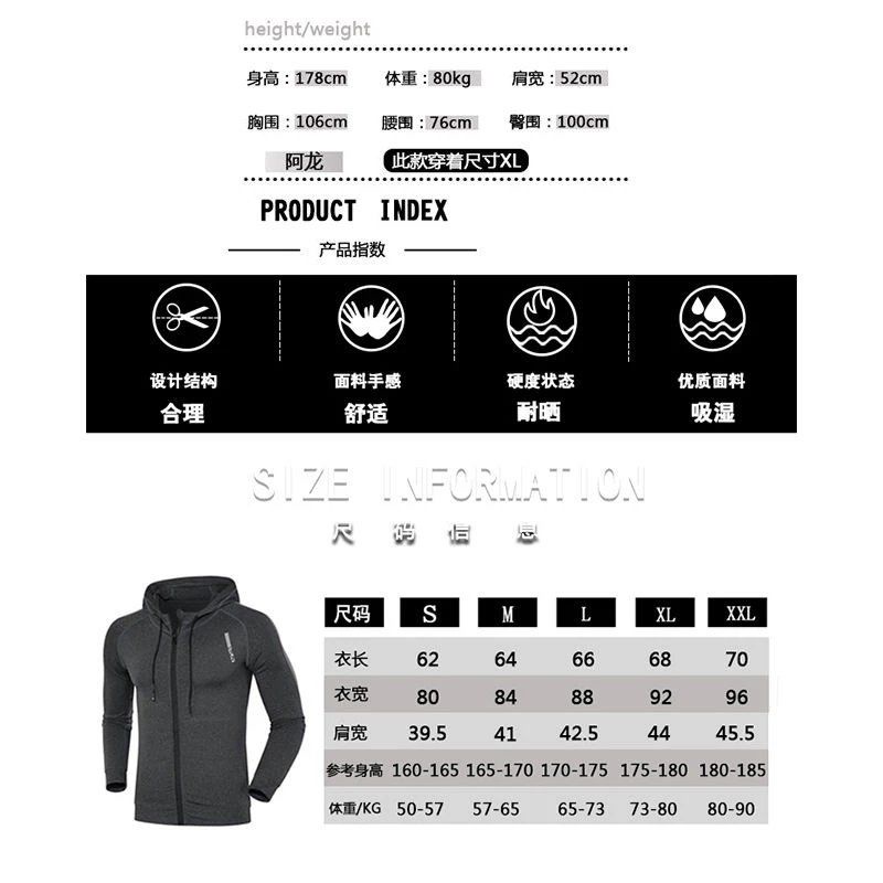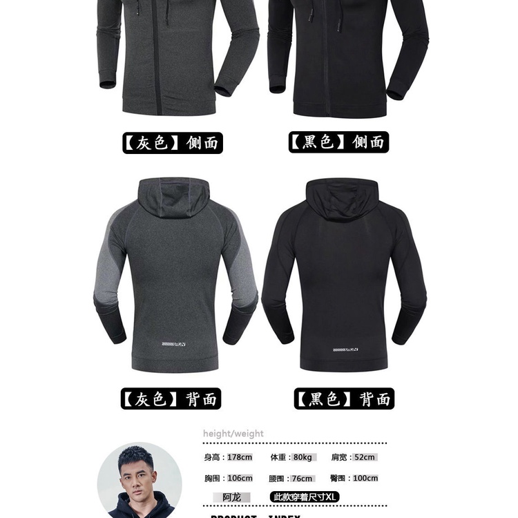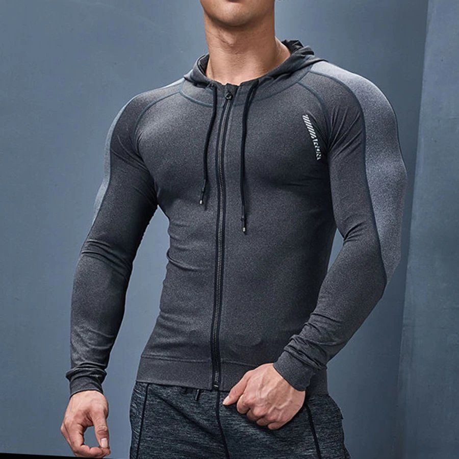 เสื้อโค้ทแขนยาวผู้ชาย Full-zip Cool Dry Compression Hooded Top