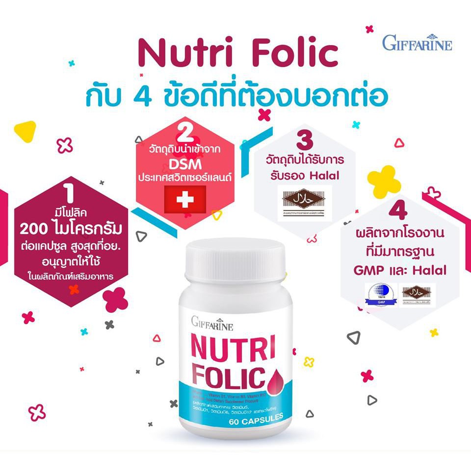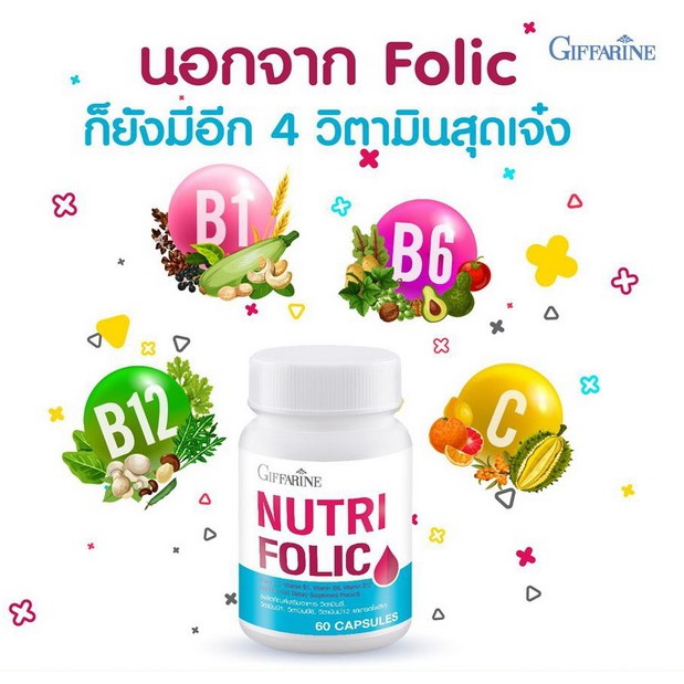 ?ลดแรง? นูทริ โฟลิค บำรุงเลือด กรดโฟลิค แก้เหน็บชา ลดการอ่อนเพลีย Giffarine Nutri Folic 60 แคปซูล