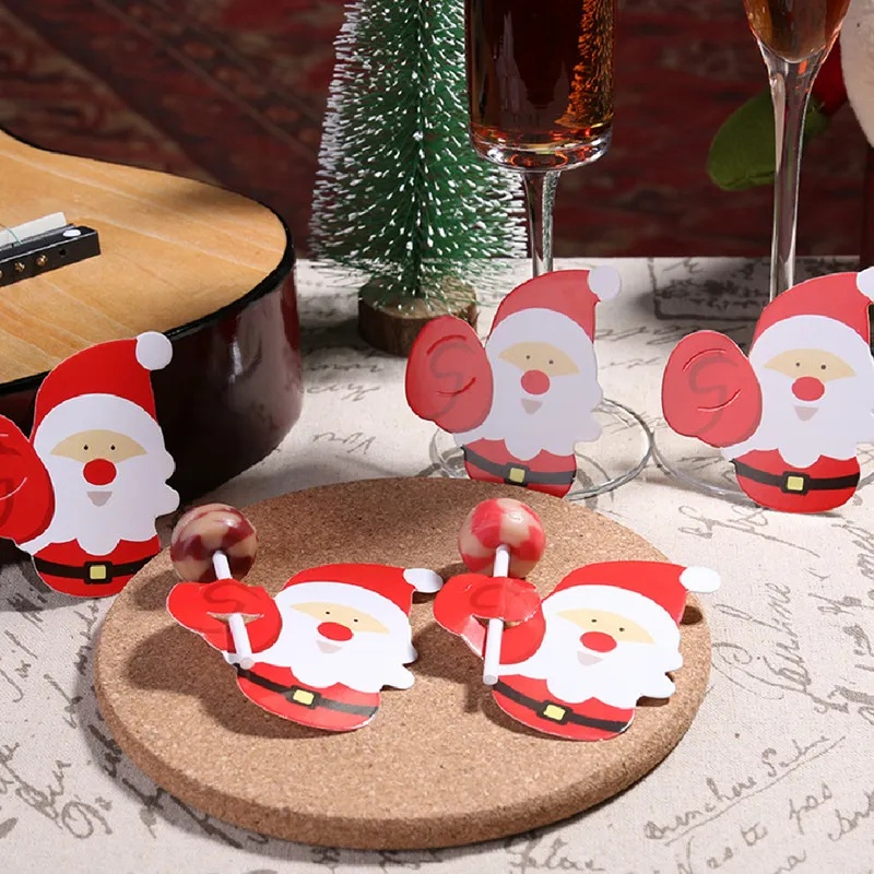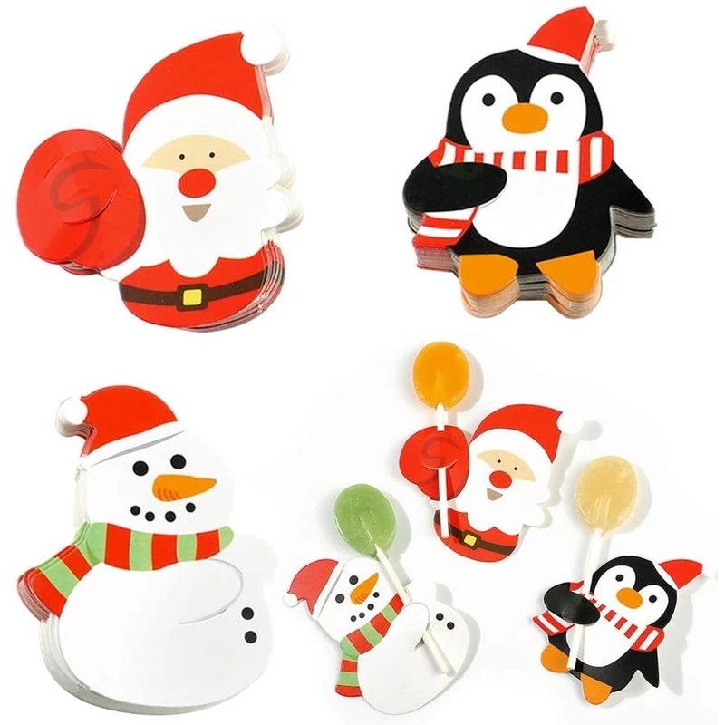 25Pcs/set Cute Penguins Santa Claus Snowman Lollipop Paper Cards/ Xmas Kitchen Table Dinner Party Decorations/ Merry Christmas Home Decor Accessories