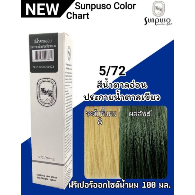 Sunpuso ซันปุโซะ ครีมเปลี่ยนสีผม สูตร AMINO ACID เบอร์ 5/72 สีน้ำตาลอ่อนประกายน้ำตาลเขียว