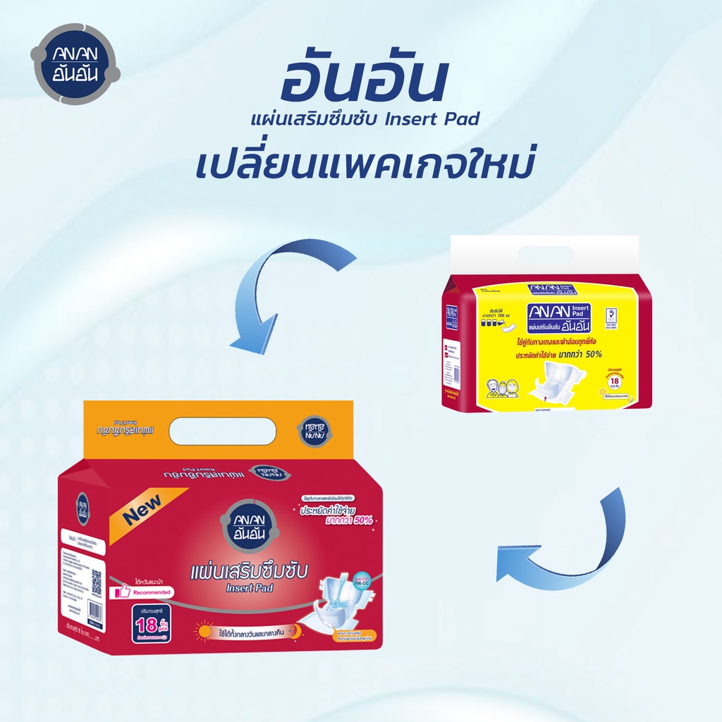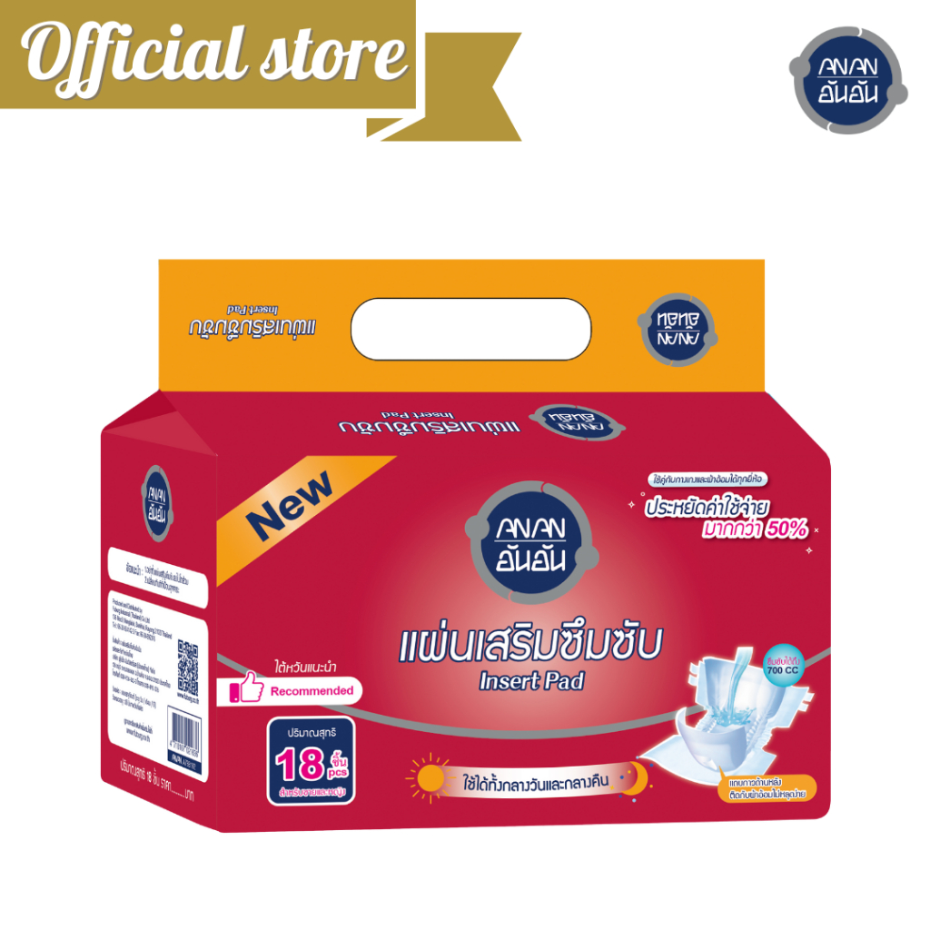 Anan แผ่นเสริมซึมซับอันอัน 18 ชิ้น แบบแพ็ค ซึมซับ 700CC Insert pad #C78819-9