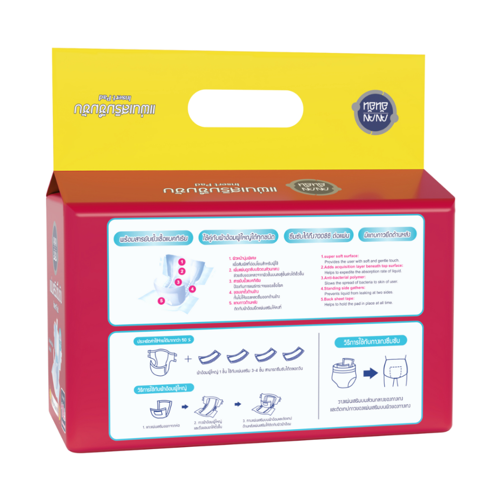 - สามารถใช้คู่กับผ้าอ้อมผู้ใหญ่หรือกางเกงซึมซับ