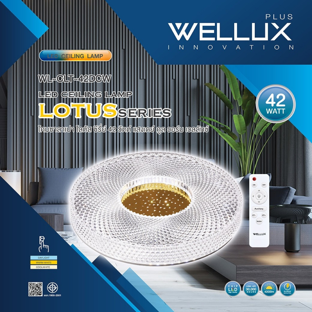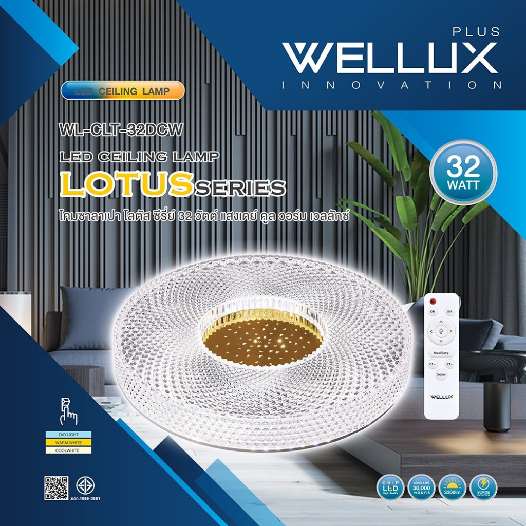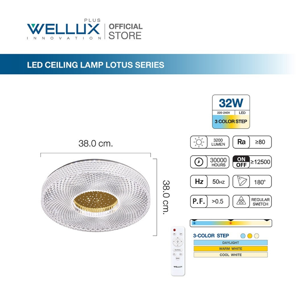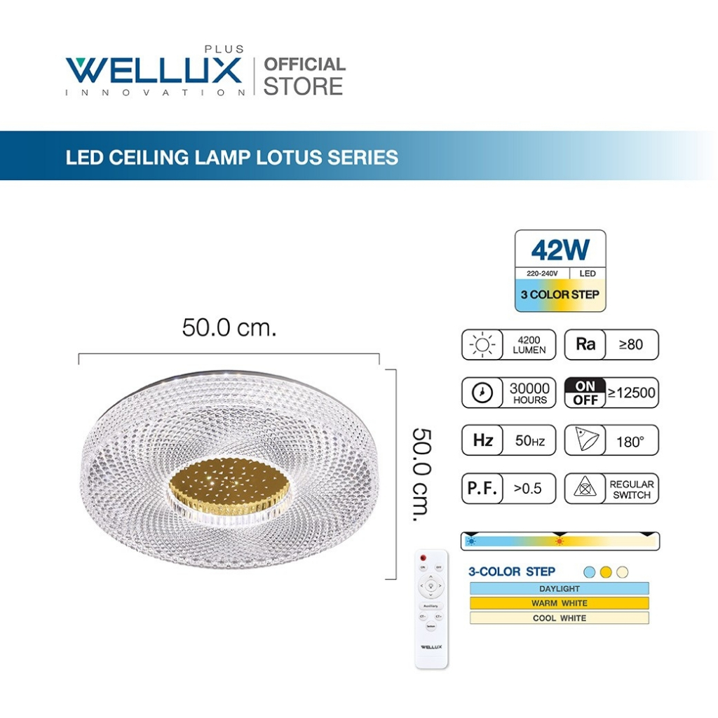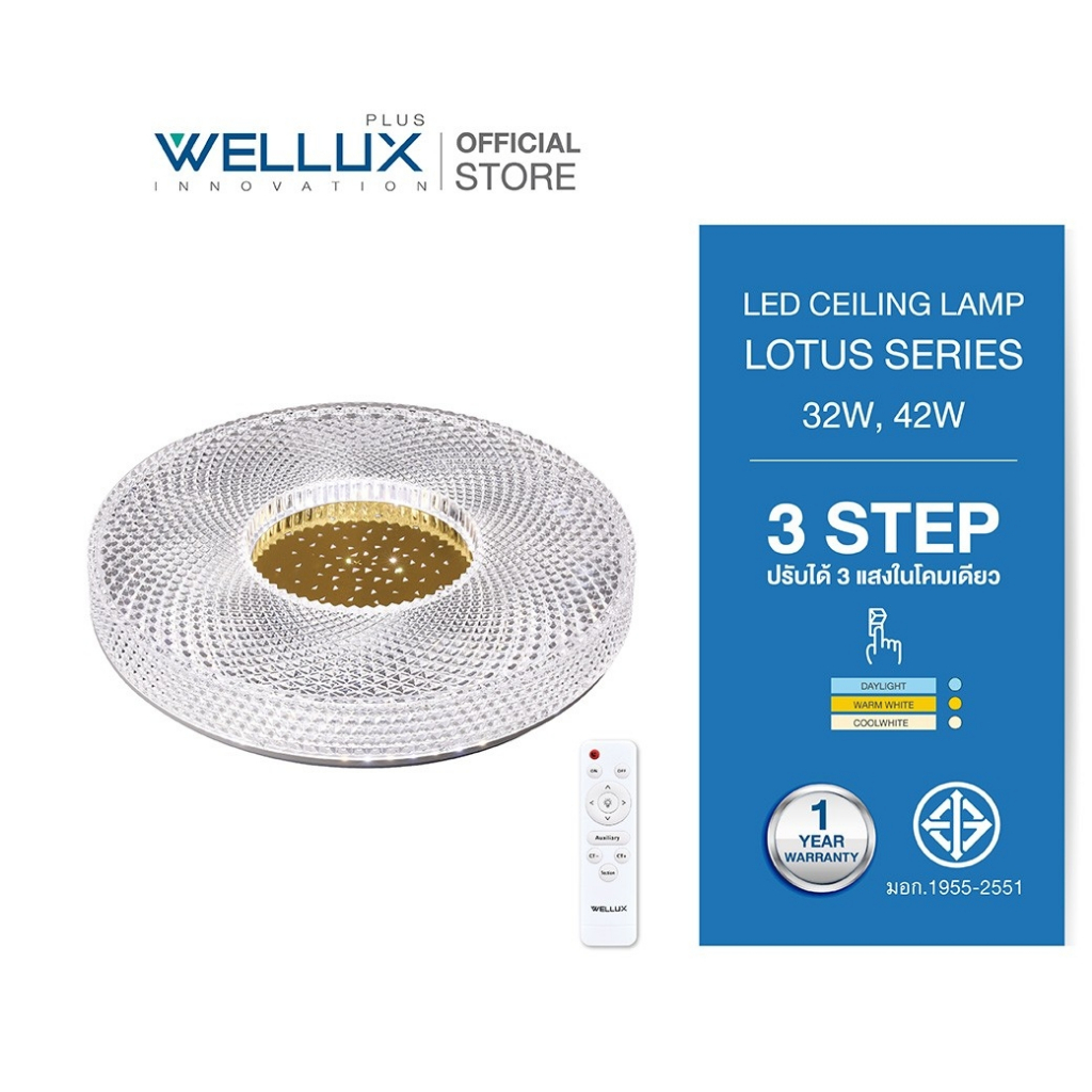 WELLUX โคมไฟเพดานติดลอย 3 แสง 32W 42W มีรีโมท LED Multi-Smart Ceiling Lamp รุ่น LOTUS SERIES