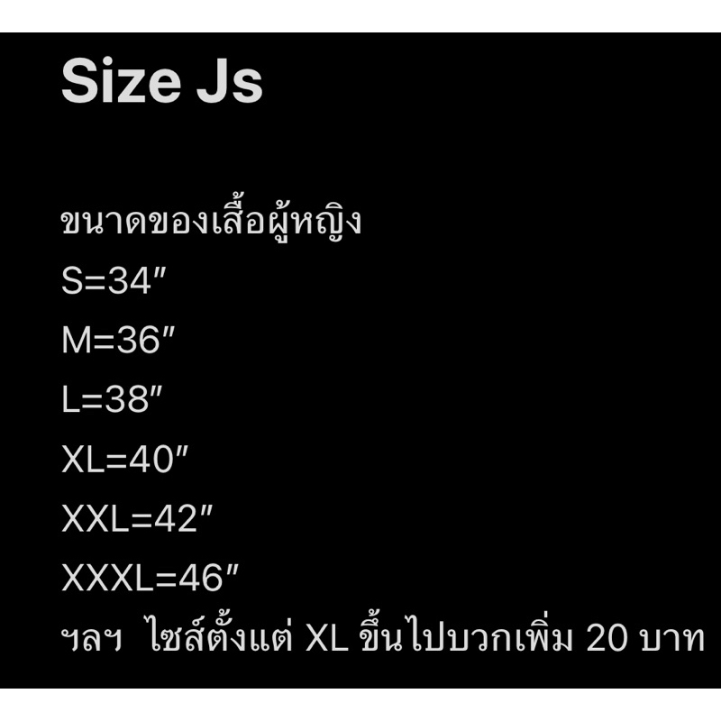 ฯลฯ ไซส์ตั้งแต่ XL ขึ้นไปบวกเพิ่ม 20 บาท