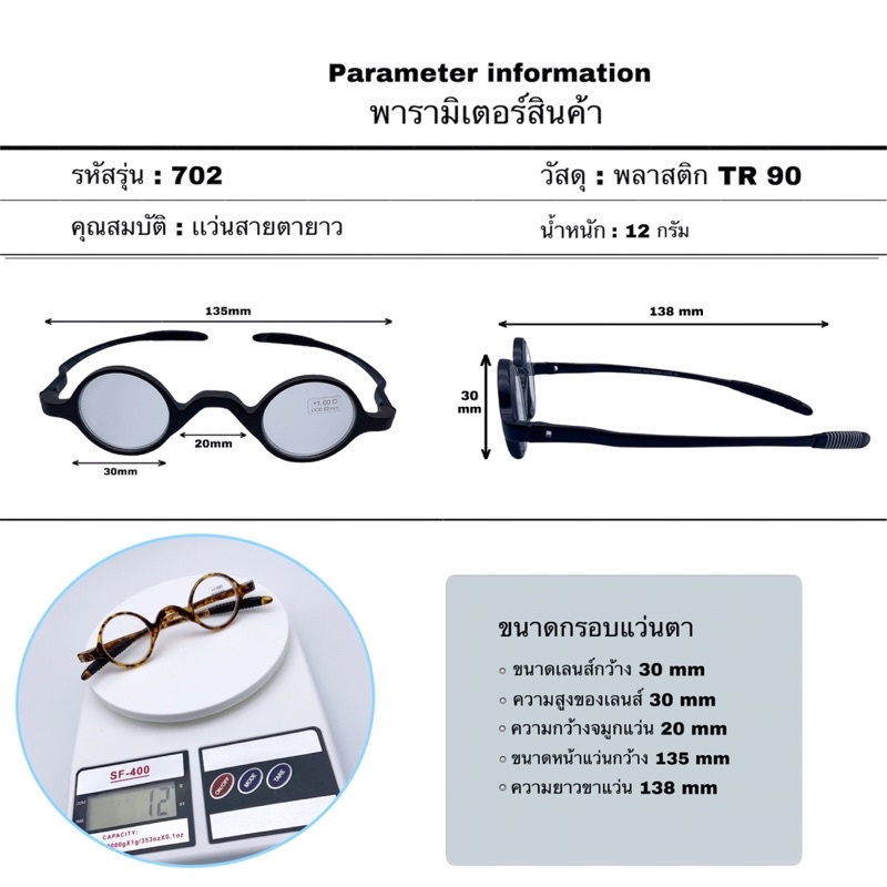 แว่นสายตายาว แว่นตาอ่านหนังสือทรงกลม (รุ่น702) เลนส์อย่างดี กรอบเนื้อเหนียว ทนทานไม่หักง่าย