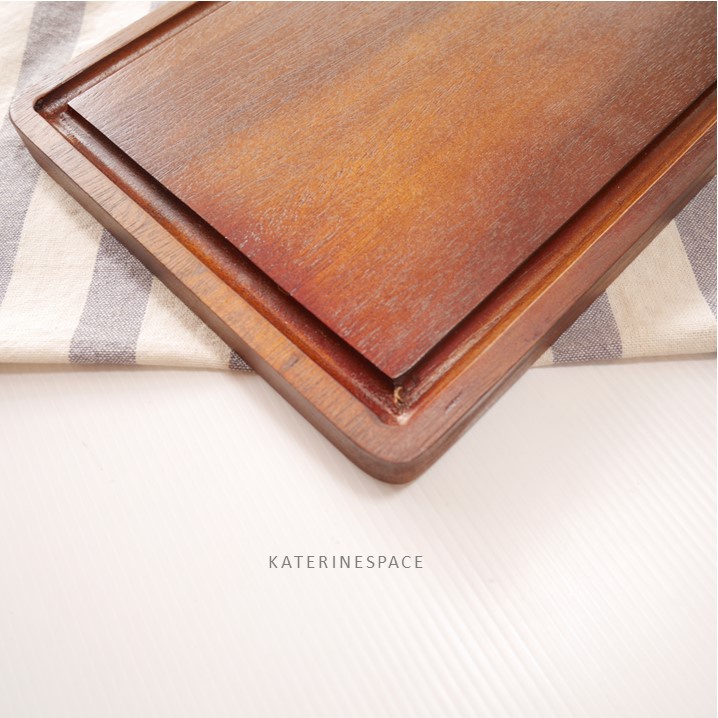 เขียงไม้ เขียงสเต็ก เขียงชีส โทนสีเข้ม ขนาด 8×16นิ้ว (รวมด้ามจับ)