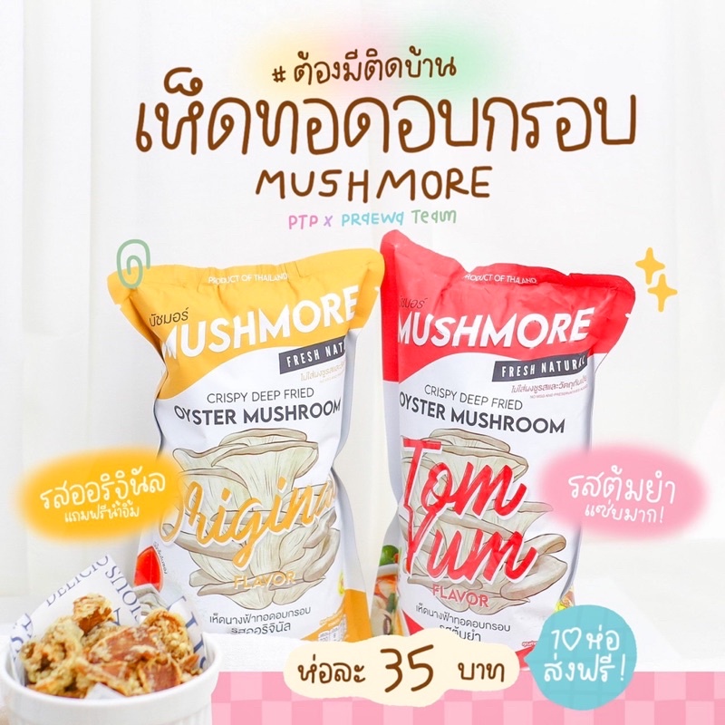 MUSHMORE ขนมเห็ดนางฟ้าทอดอบกรอบ ที่เป็นมากกว่าเห็ด? กินแล้วติด กินแล้วกรอบ กินแล้วมีต่อห่อที่สองแน่นอน?