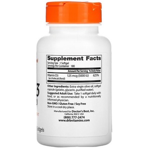 (พร้อมส่ง) Doctor’s Best, Vitamin D3, 125 mcg (5000 IU), 180/360/720 Softgels.ซ่อมแซมกล้ามเนื้อ บำรุงกระดูก เม็ดเลือดขาว
