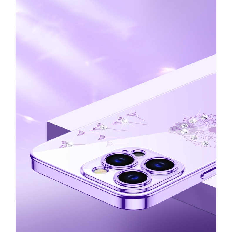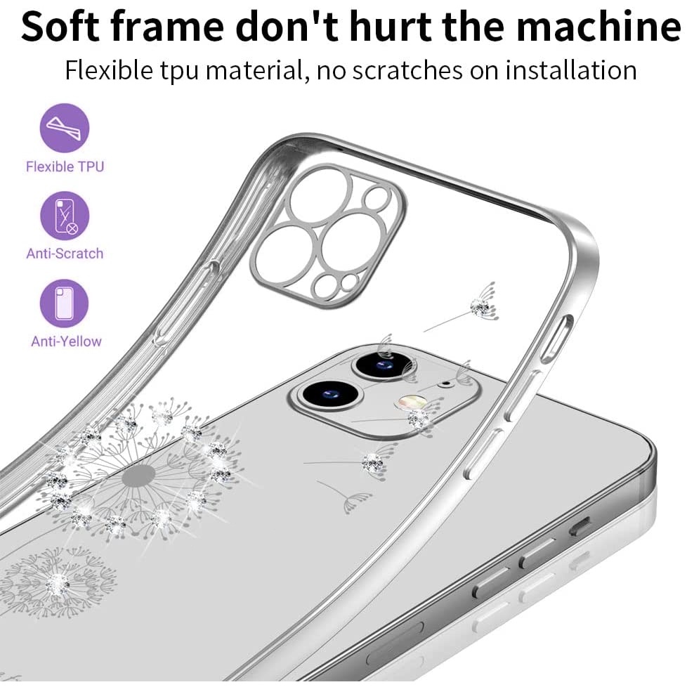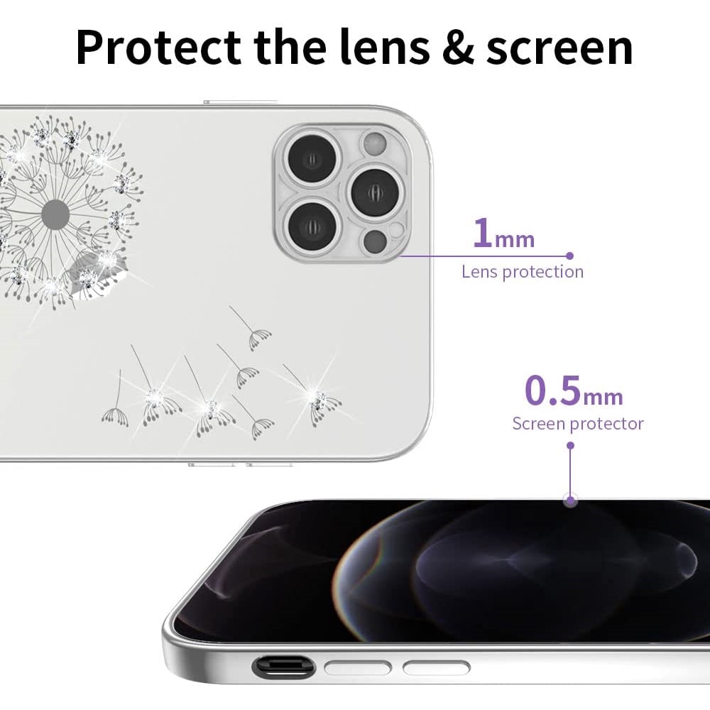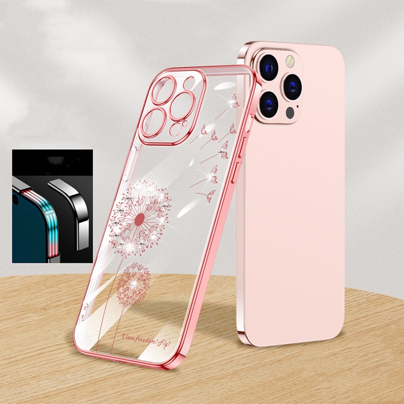 เคสโทรศัพท์มือถือแบบนิ่ม TPU ใส กันกระแทก ลายดอกแดนดิไลออน ประดับเพชร สําหรับ iPhone 14 13 12 11 Pro Max