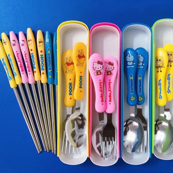 ช้อนส้อมตะเกียบเด็ก ลายน่ารัก วัสดุคุณภาพ ไม่เป็นสนิม สินค้าสำหรับเด็ก A136