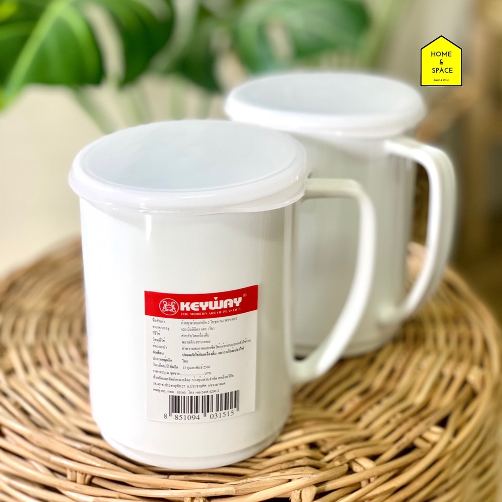 แก้วน้ำพลาสติก มีฝาปิดเข้าไมโครเวฟได้ KEYWAY รุ่น WP149/2 (แพ็ค 2ชิ้น)