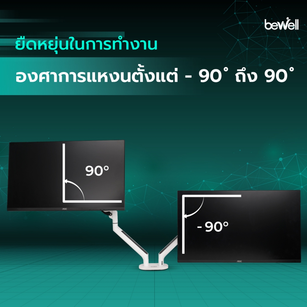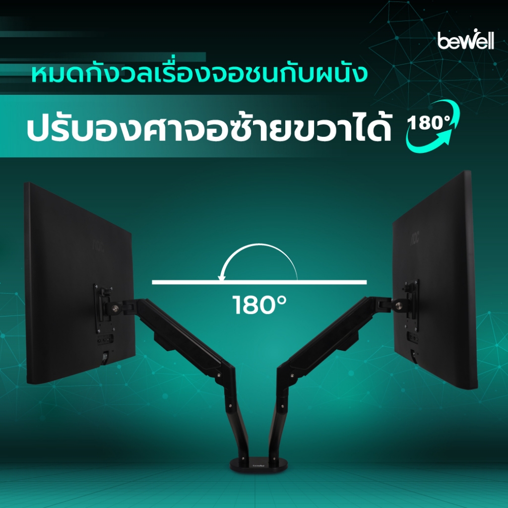 Bewell Dual arm monitor แขนจับจอมอนิเตอร์แบบคู่ วางได้สองจอ หมุนได้ 360 องศา ปรับองศาจอซ้าย-ขวาได้ 180องศา
