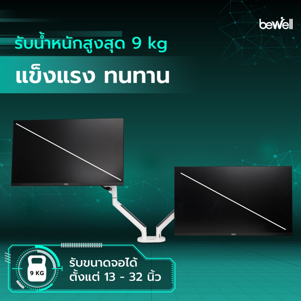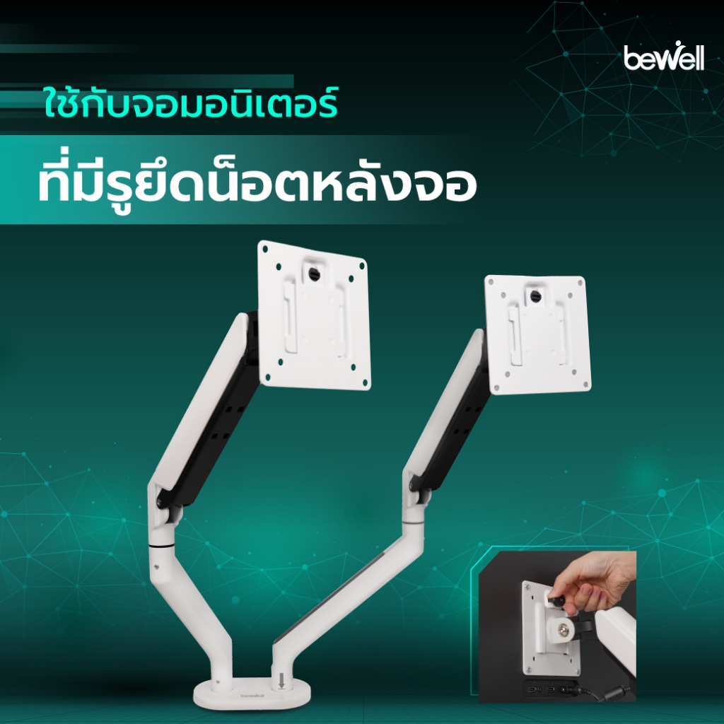 Bewell Dual Arm Monitor แขนจับจอมอนิเตอร์แบบสองจอ ที่จะช่วยให้การจัดวางจอมอนิเตอร์สวยงาม เป็นระเบียบดูสบายตา อีกทั้งยังช่วยในเรื่องการประหยัดพื้นที่ในกรณีที่ใช้งา