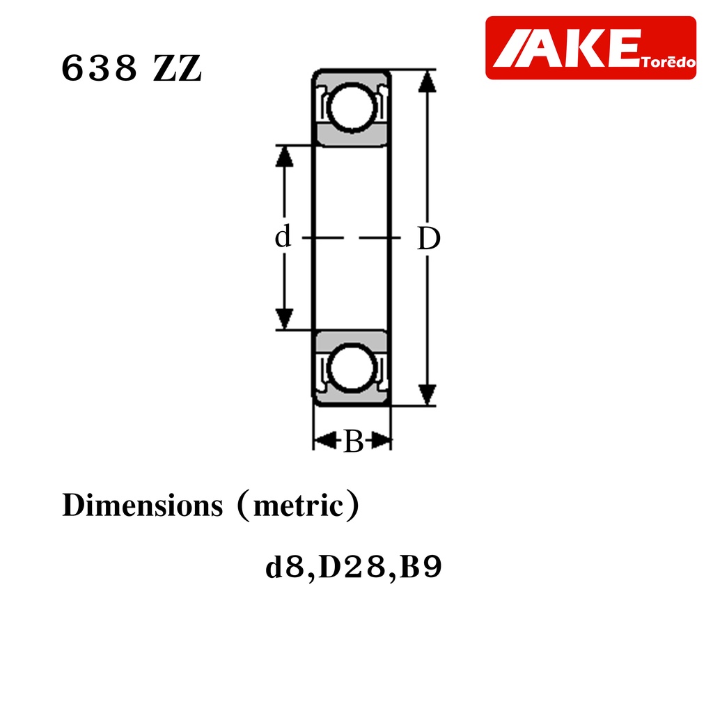 638ZZ ( จำนวน 10 ชิ้น ) 8x28x9 mm. ตลับลูกปืนเม็ดกลม ฝาเหล็ก 2 ข้าง ( BALL BEARINGS ) 638 ZZ 638Z โดย AKE