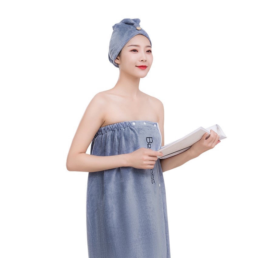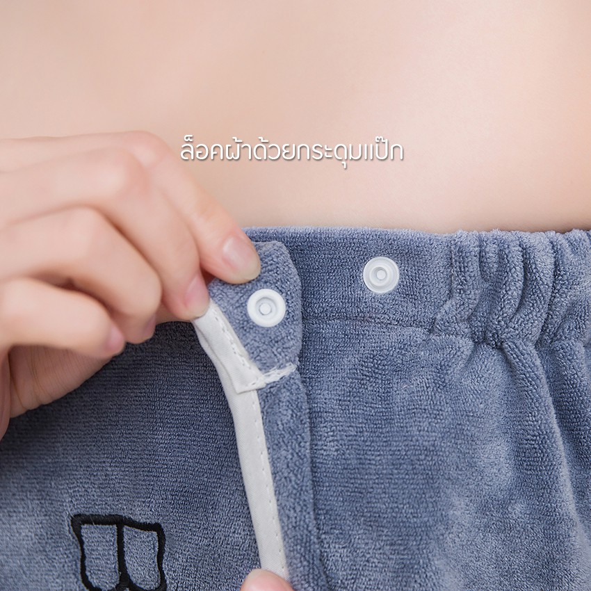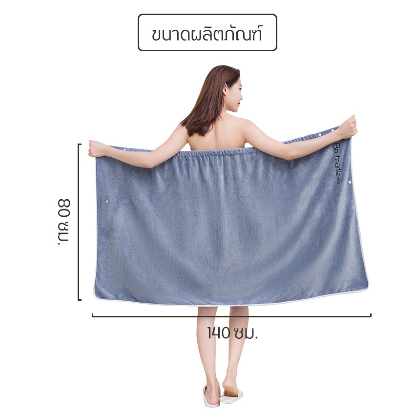 Feiyana ผ้าขนหนูอาบน้ำ รุ่น MD-S142 ผ้าเช็ดตัวใหญ่ มียางยืดและกระดุมแป๊ก พร้อมผ้าคลุมผม ผ้าหนานุ่ม (ขนาด 80 x 140 CM)