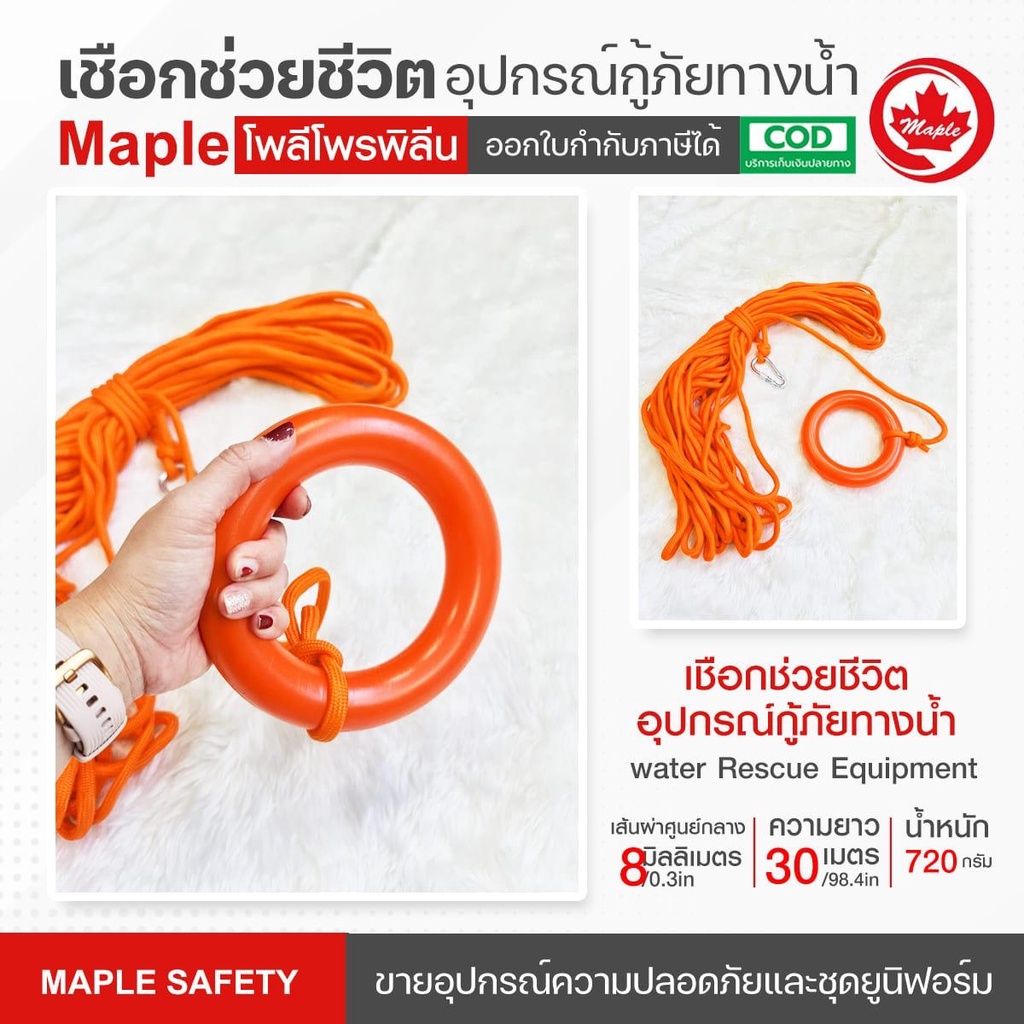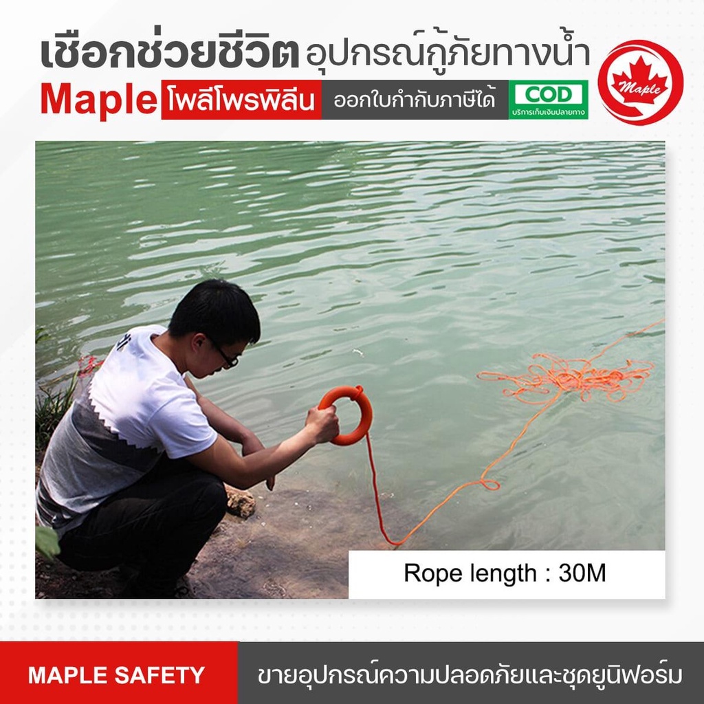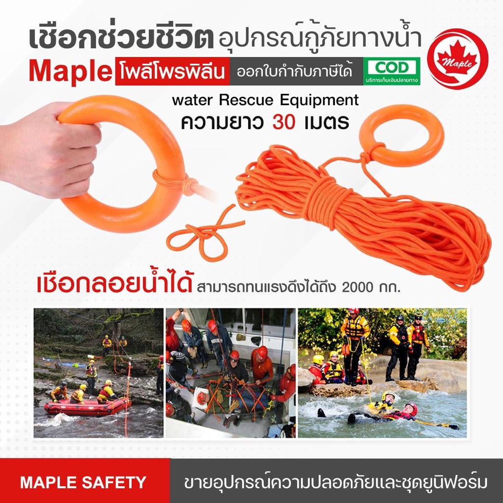 เชือกช่วยชีวิต อุปกรณ์กู้ภัยทางน้ำ Water rescue equipment 8มม.ยาว30เมตร