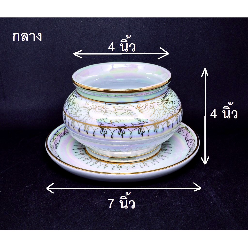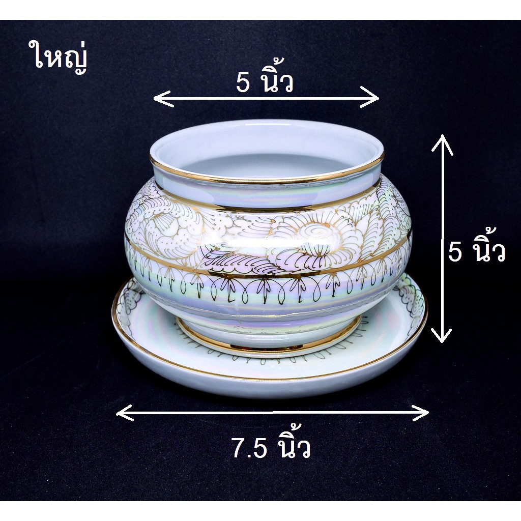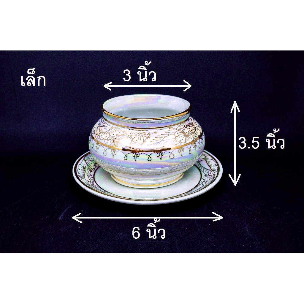 กระถางธูปลายไทย เคลือบมุกลายทอง พร้อมจานรอง