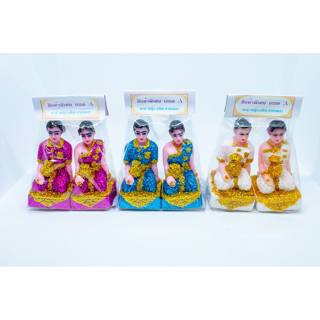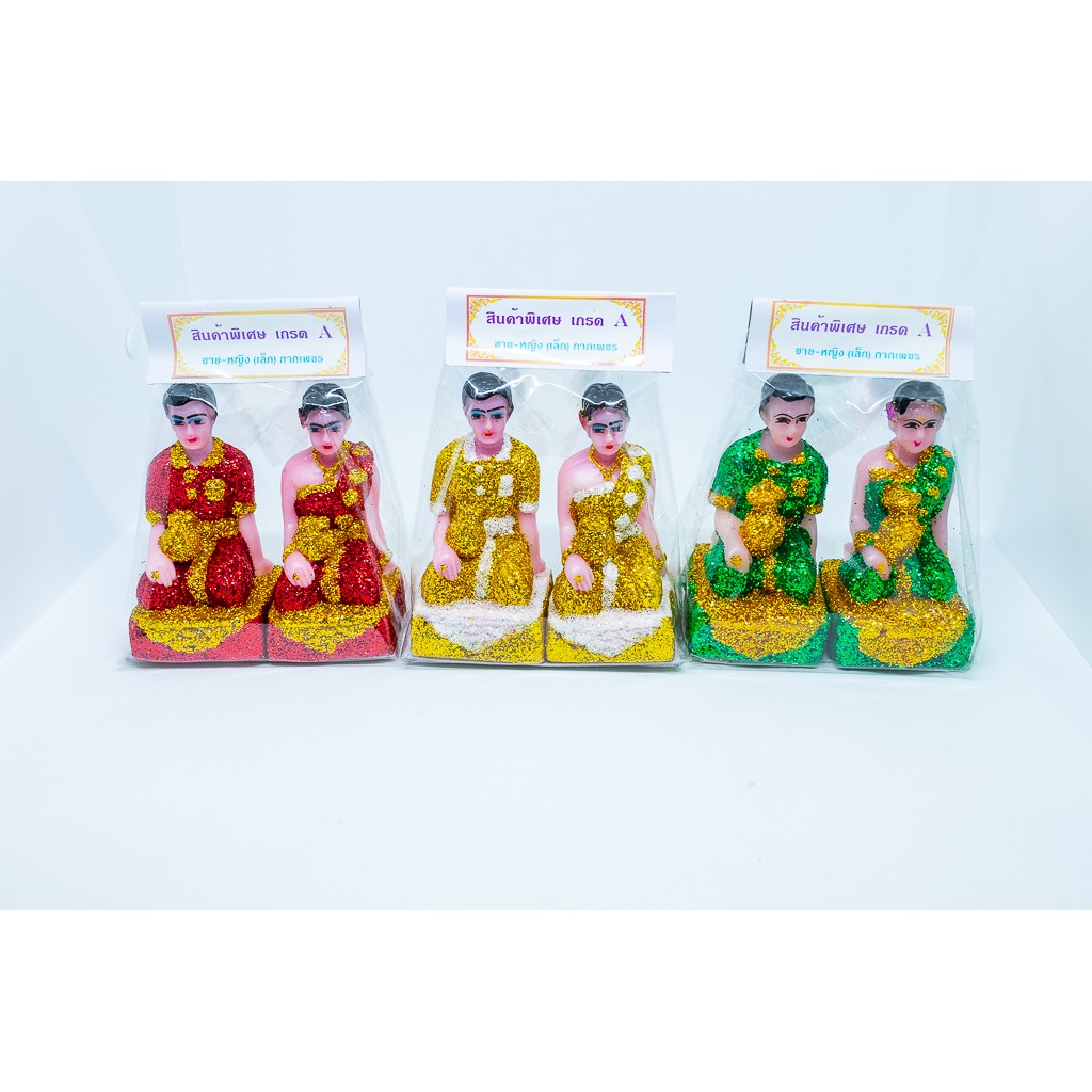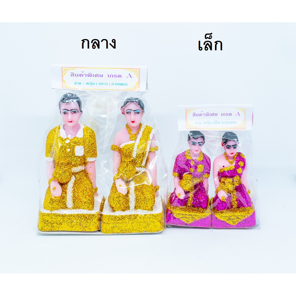 ตุ๊กตาตั้งศาล ตุ๊กตาแก้บน ชาย-หญิง กากเพชร ขนาดกลาง/เล็ก