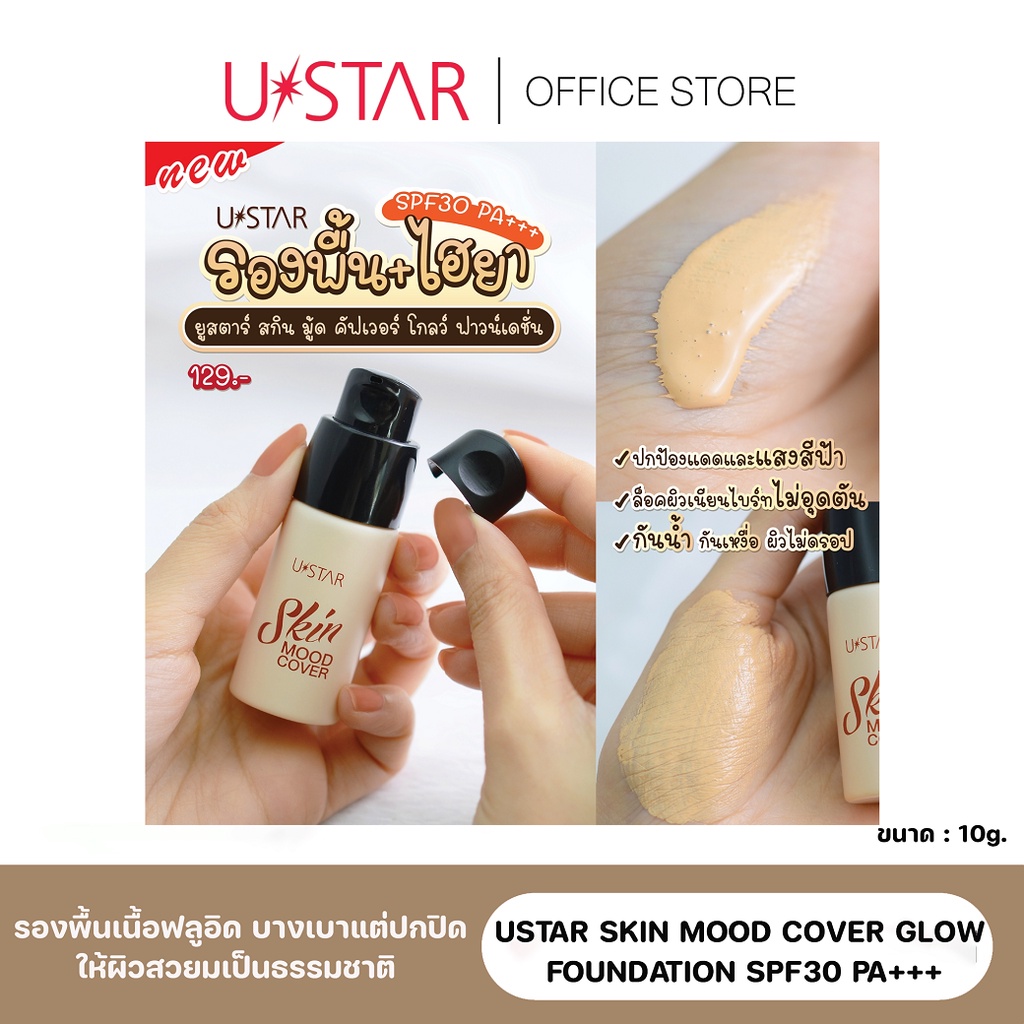 USTAR SKIN MOOD COVER GLOW FOUNDATION SPF30 PA+++ ฟาวน์เดชั่น รองพื้นกันแดด รองพื้น ปกปิด กันน้ำ กันเหงื่อ ครีมรองพื้น