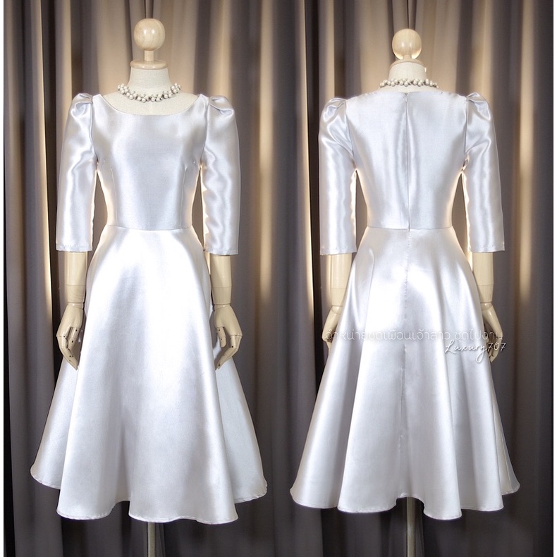 VG0313 แขนสามส่วน ทรงเรียบหรู ชุดออกงานทางการ ทรงสุภาพ ชุดพิธีการ เดรสทำงาน [LUXURY707]