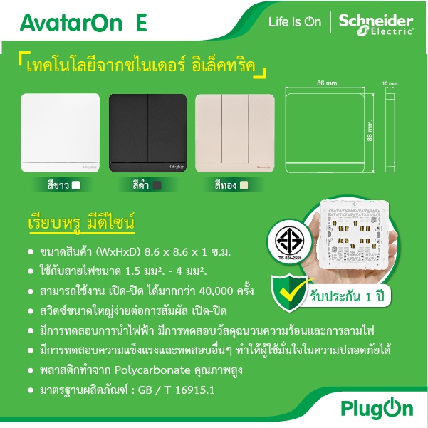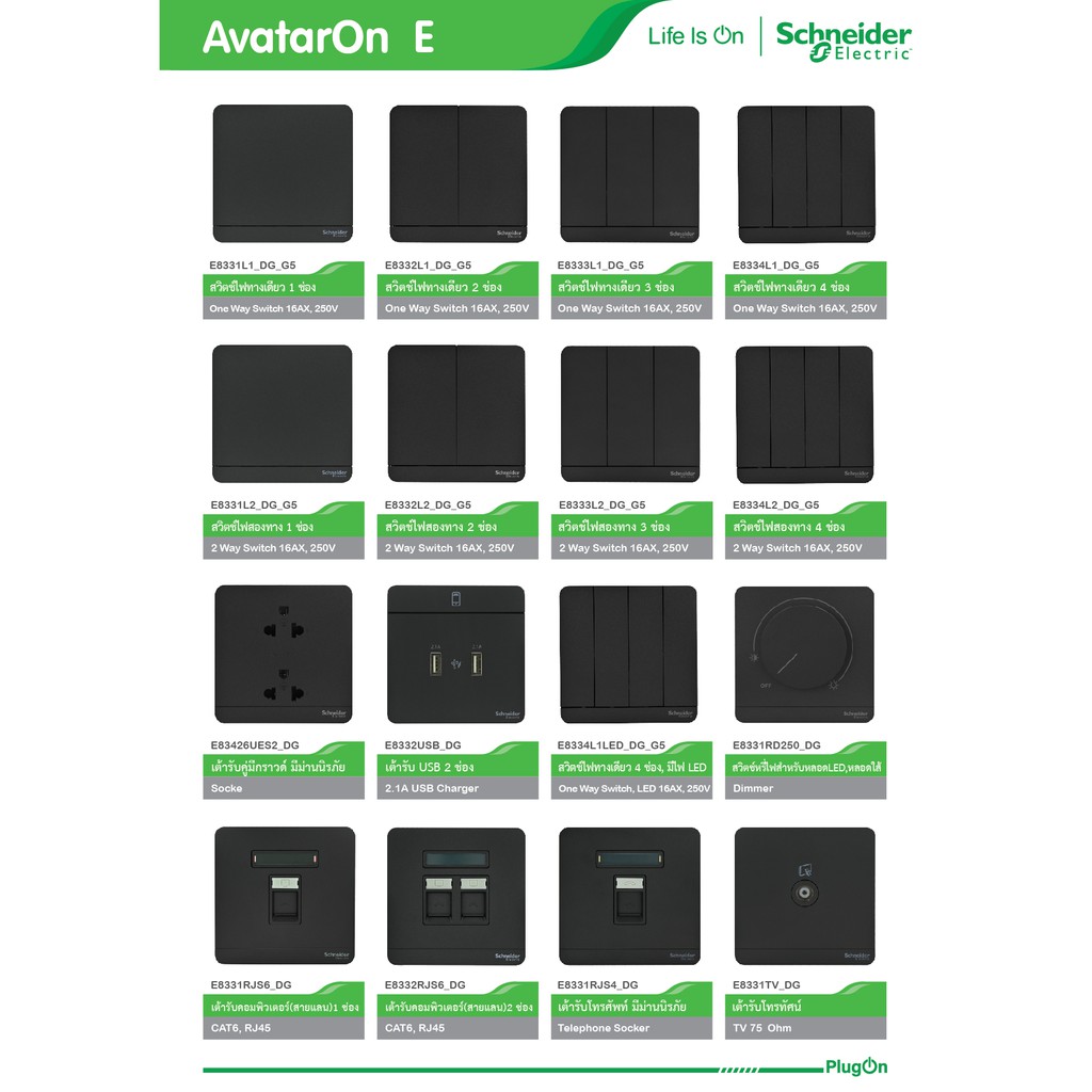 ✅ Schneider Electric สวิตช์ เต้ารับ ทีวี โทรศัพท์ ปลั๊กไฟชไนเดอร์ รุ่น AvatarOn E สีดำ สั่งซื้อที่่ร้าน PlugOn