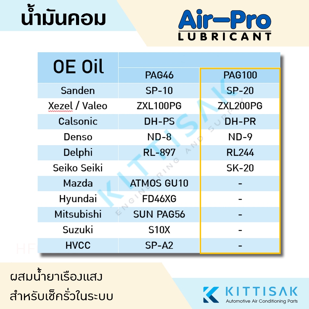 น้ำมันคอมเพรสเซอร์ Air-Pro พร้อมสารเช็ครั่วเรืองแสง น้ำมันคอมแอร์