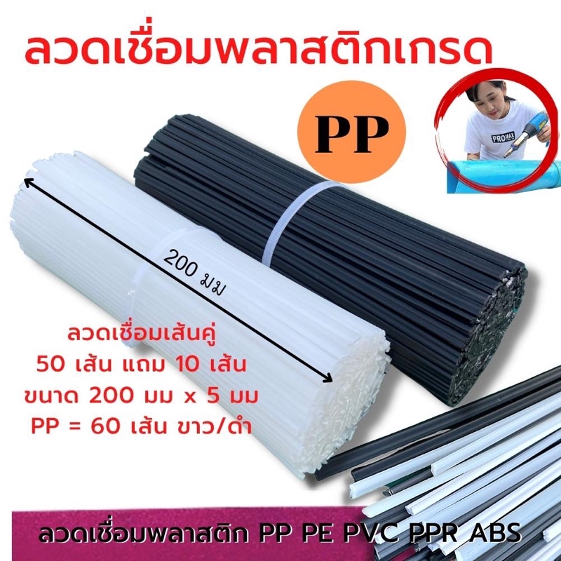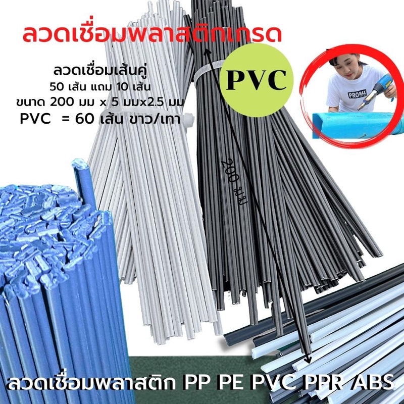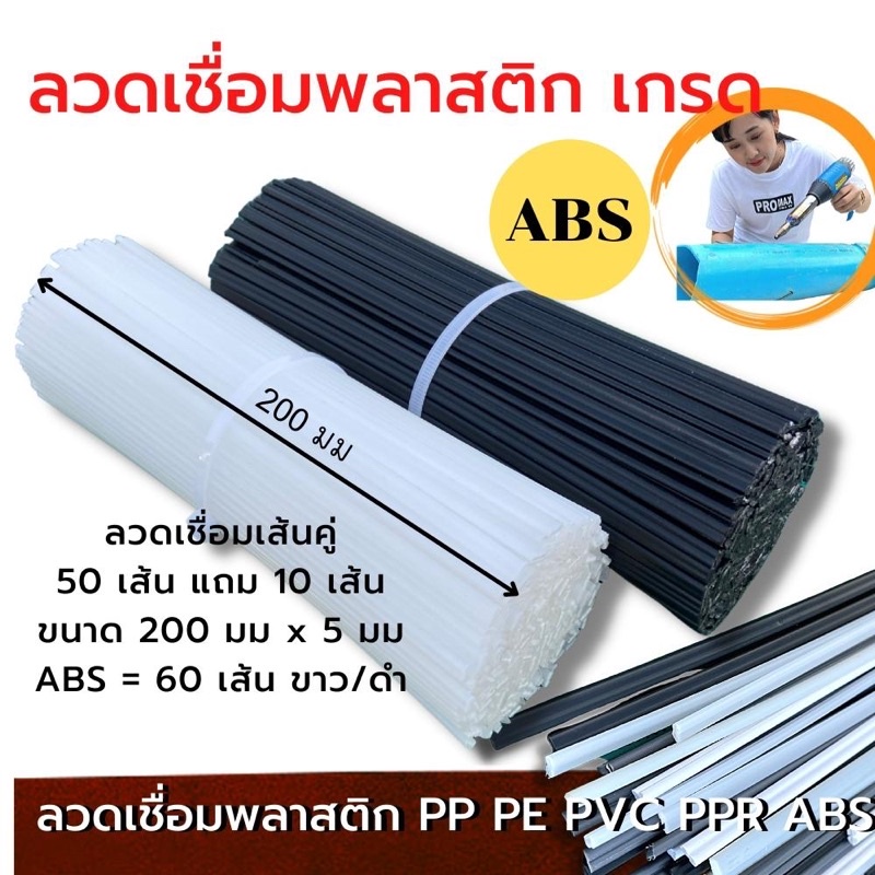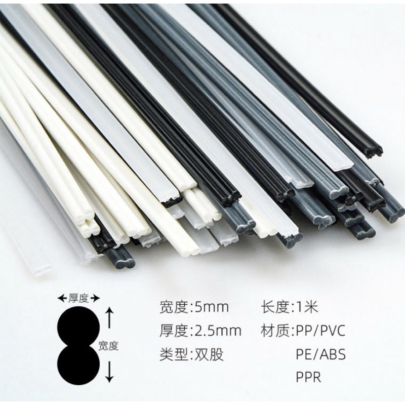 ลวดเชื่อมพลาสติก ABS/PVC/PP/PE แบบเส้นคู่ ขนาด 200มมx5มมx2.5มม สีขาว/ดำ/เทา
