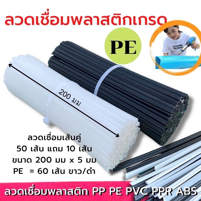 เส้นเชื่อมพลาสติก PE มีสีดำและขาว คละสี ใช้สำหรับเชื่อมพลาสติกเนื้อพีอี ถังเก็บน้ำแข็ง ถังเก็บสารเคมี ถังเก็บน้ำเสีย ถังเคมี