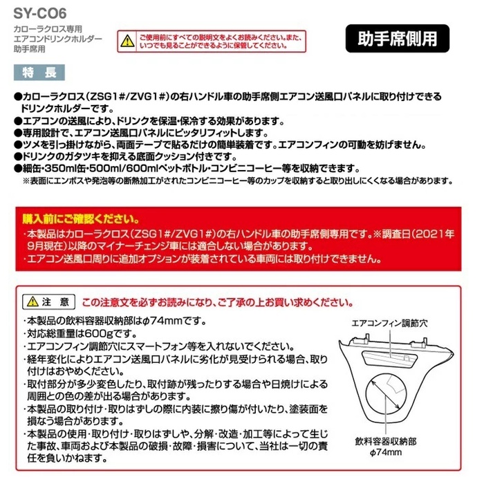 Pre Order !! SY-CO6 Toyota Corolla Cross ที่วางแก้วฝั่งผู้โดยสาร ลิขสิทธิ์ของแท้จากจากญี่ปุ่น